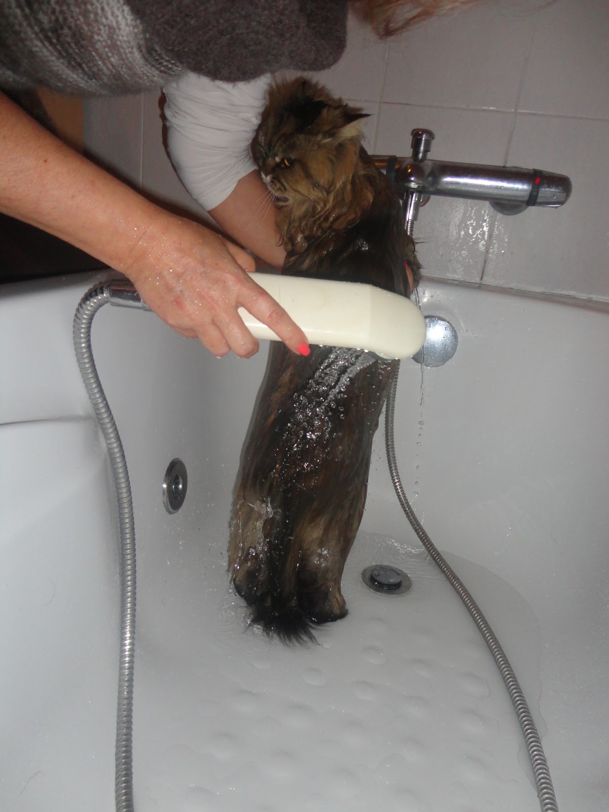 a minha gata também não gosta nada de tomar banho, mas as vezes não há outro remédio!