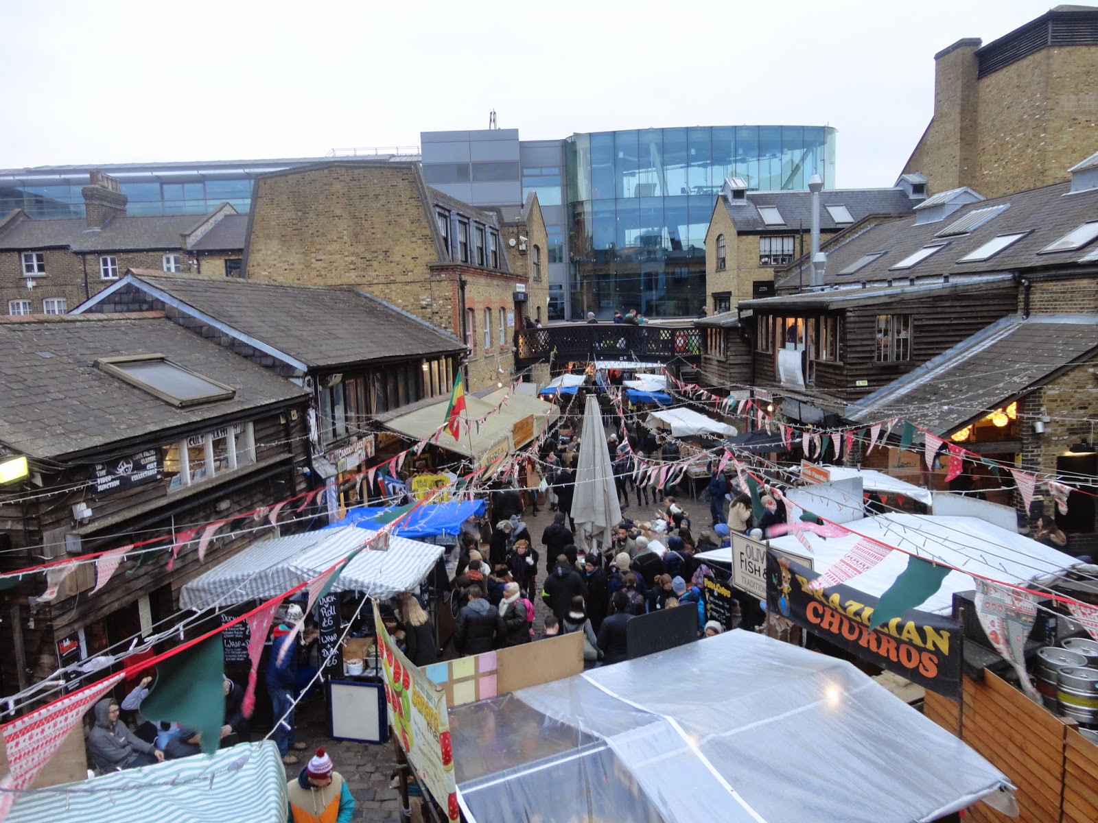 Era sábado à tarde e estava completamente a abarrotar. Mas desta vez não com turistas mas sim a população jovem de Londres que ali se encontra para beber uma bebida quente, ver as novidades ou simplesmente passear. Eram centenas e centenas de pessoas nos seus 20 anos de todas as nacionalidades! Encontrei dezenas de Portugueses! Até um dos vendedores dos seus 60 e tal anos era português. Tinha uma barraquinha de pasteis de nata e chocolate quente que esteve sempre à pinha! Tive pena de não conseguir ver absolutamente tudo mas o meu irmão já não conseguia andar, muito menos para se por a ver lojas - homens!