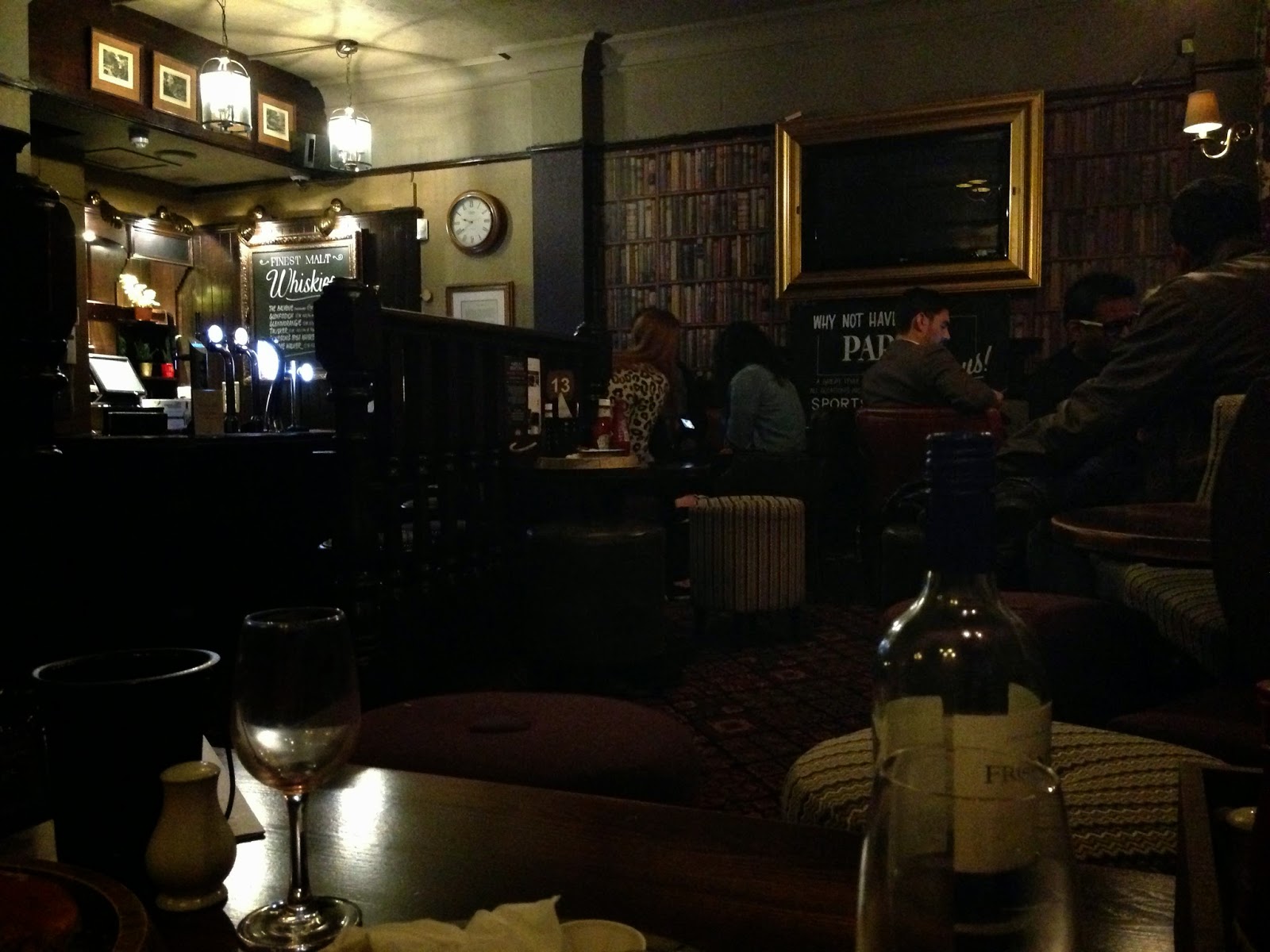 Depois foi hora de jantar!! Desta vez escolhemos um pub acolhedor. Consegui finalmente experimentar fish and chips! Nunca tinha comido mas tenho-vos a dizer que o peixe frito da minha mãe é bem melhor e com mais sabor! Fiquei um bocadinho desiludida mas também não sei se o sitio onde o comi era o melhor portanto fica o beneficio da duvida...